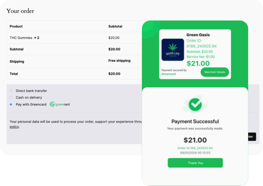 Navigating the Cannabis Payments Industry is complex to say the least. NCP has partnered with Greencard to bring you 100% compliant and fast bank to bank payments. Together we help merchants simplify payments and accelerate their revenue cycle with a fast, dependable system built for today’s businesses. Competitive fees and powerful tools make managing transactions and operations straightforward, giving you more time to grow your business.